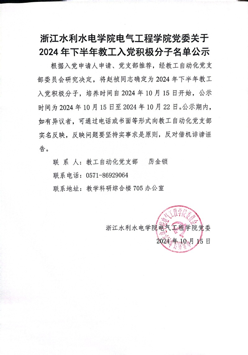 【党建】浙江水利水电学院电气工程学院党委关于2024年下半年教工入党积极分子名单公示