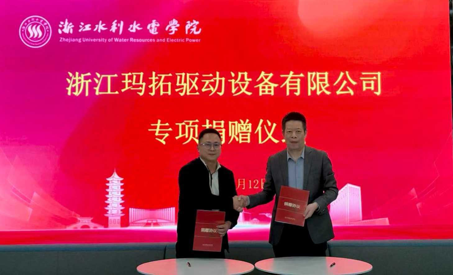 仪式上,钱士亮与胡吕平共同签署捐赠协议。根据协议,浙江玛拓驱动设备有限公司将向我校电气工程学院专项捐赠经费,用于支持学院学生科创竞赛及文体活动。